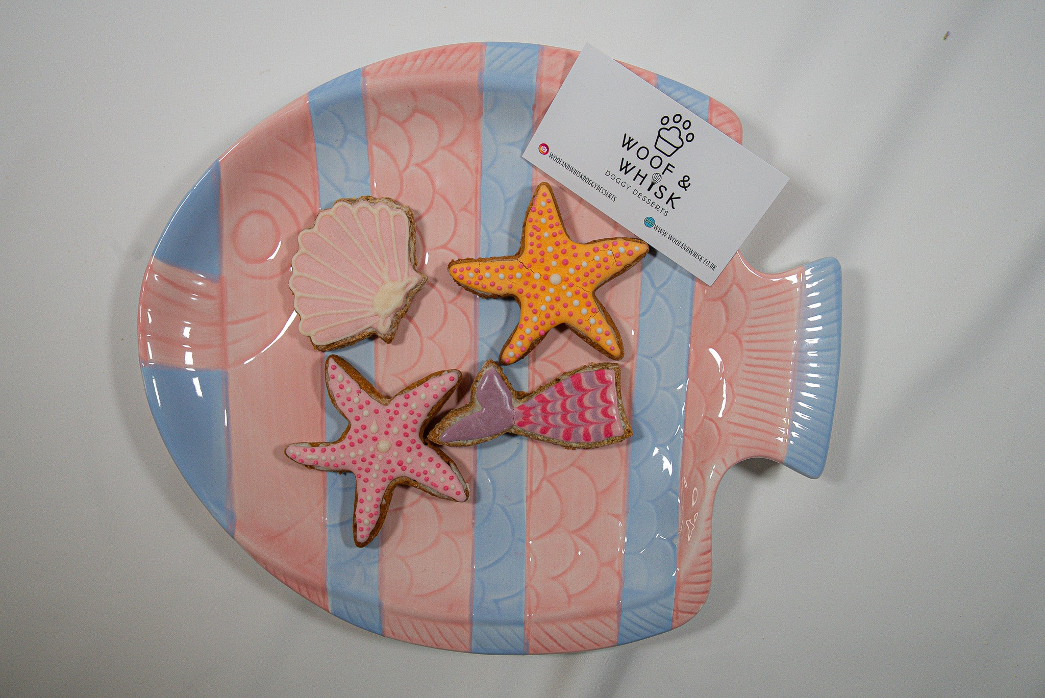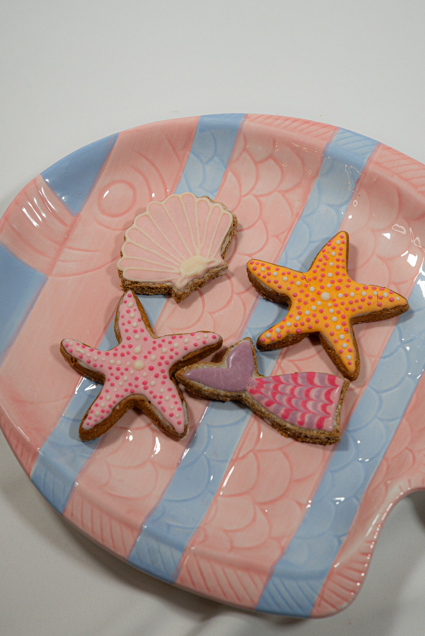 Say hello to the Unda Da Sea Pack: 2 iced starfish, a mermaid tail, and a shell — all hand-iced and made for pups who paddle, pose, and snack in style.
